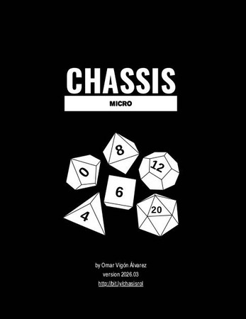 The Micro version represents a new basic Chassis manual of 8 pages. If you want more options, components, rules and accessories consult the advanced Chassis manual (over 600 pages, only for hardcore spanish readers).
